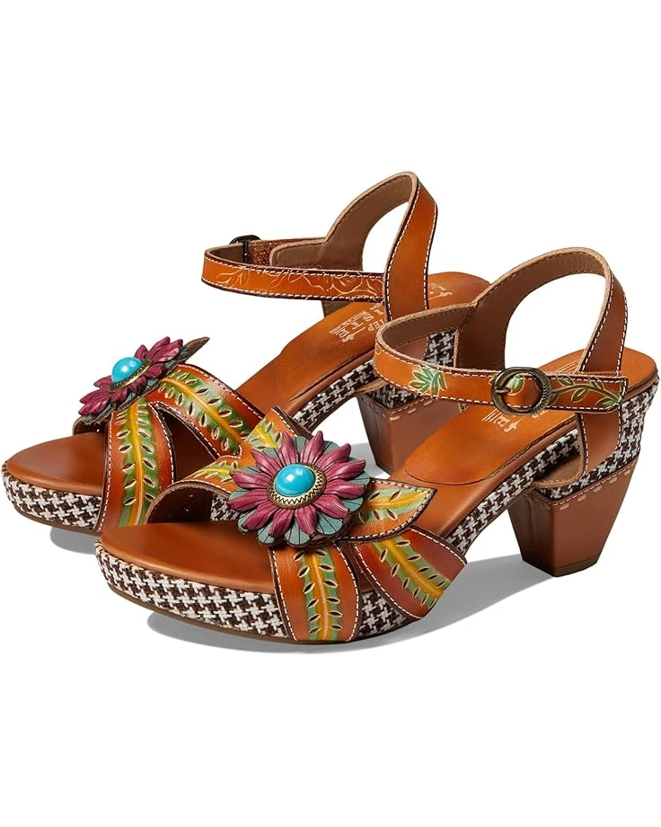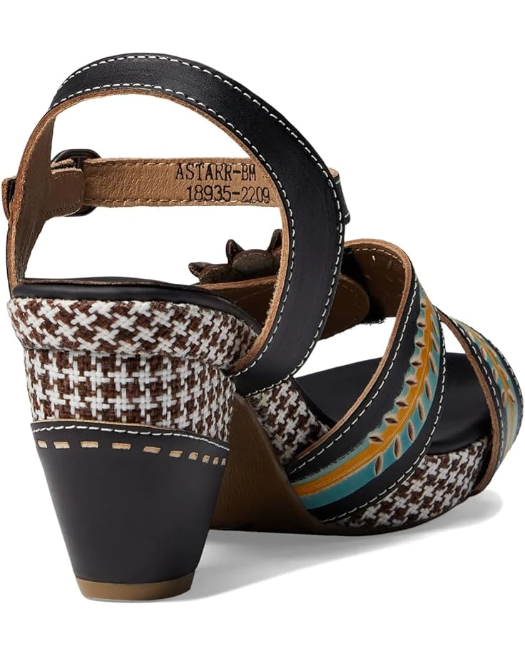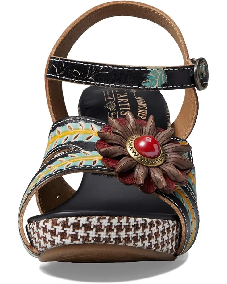 - A beautiful floral detailing on the front accentuates the look of the L’Artiste by Spring Step® Astarr Heeled Sandals.