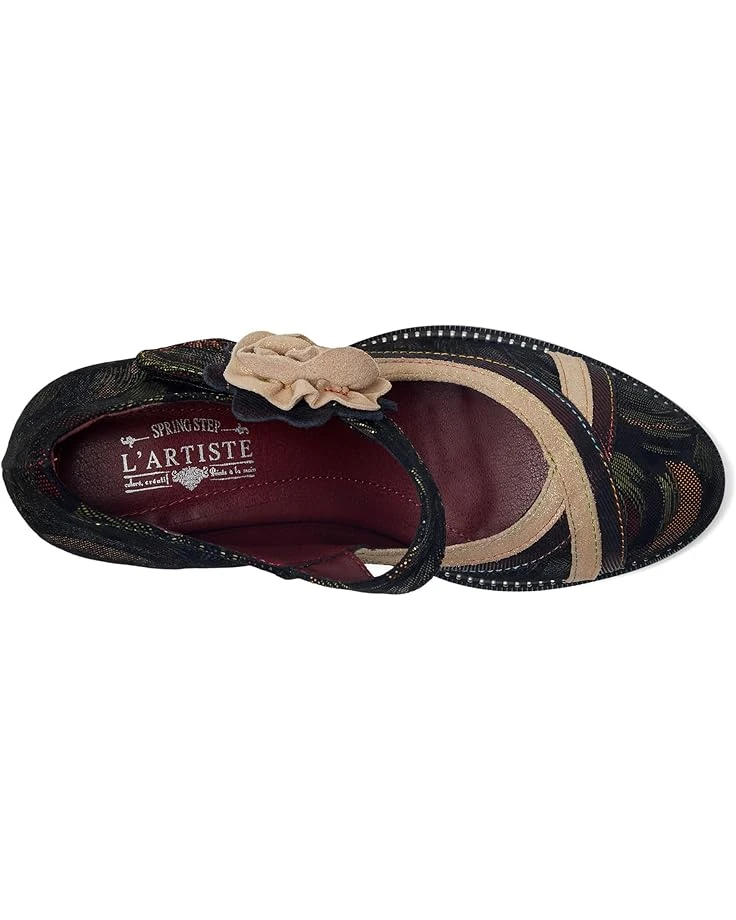 - Say goodbye to the expected with L’Artiste by Spring Step® BEVERLYHILLS. Its artful mix of patterns gives the Mary Jane an edgy, contemporary vibe. The marblesque accents on the block heel offer depth and visual interest, while the metallic detail acts as the perfect bridge between color blocks. Customize your fit with the adjustable strap, and show off your feminine side with the decorative flower.