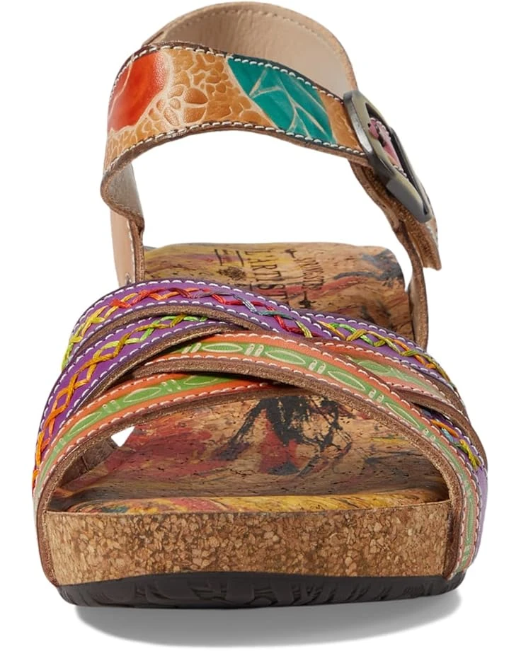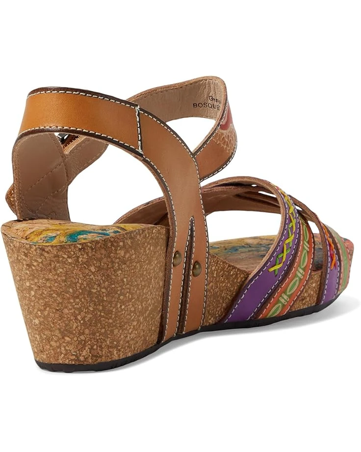 - Walk the runway of life wearing the L’Artiste by Spring Step® Bosquet. Crafted from leather upper, leather lining and leather insole, this pair of sandals features open round toe, cork wedge heel, padded backstrap with hook-and-loop closure for both style and fit. It comes with the combination of decorative stitching and hand-painting for an attractive look.