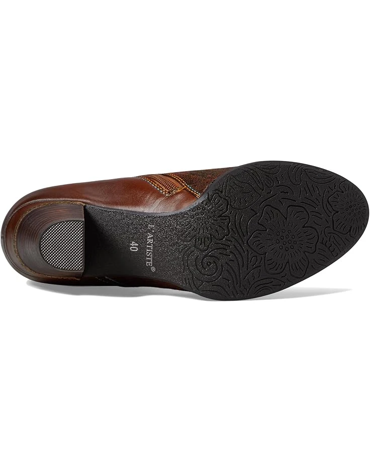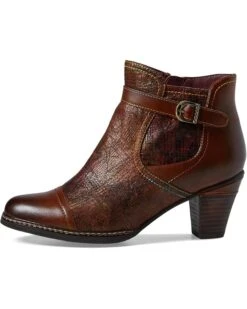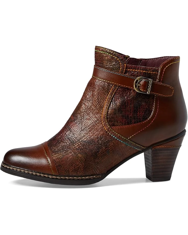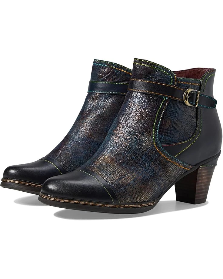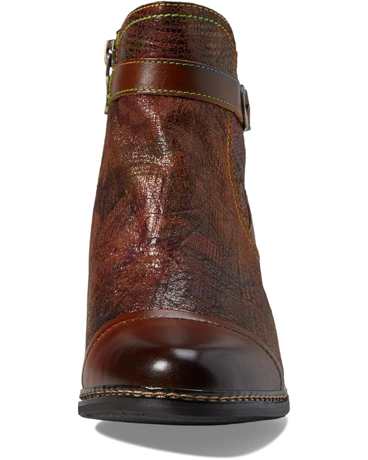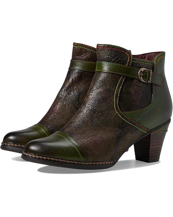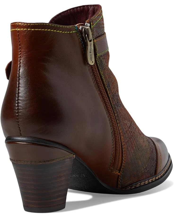- Take the journey beyond ordinary wearing the L’Artiste by Spring Step® Captivate. This pair of classic bootie features an elegant shimmer material. Crafted from leather and textile upper, it features leather burnished toe and heel, and decorative ankle strap with an antique brass buckle on an all-day wear block heel.
