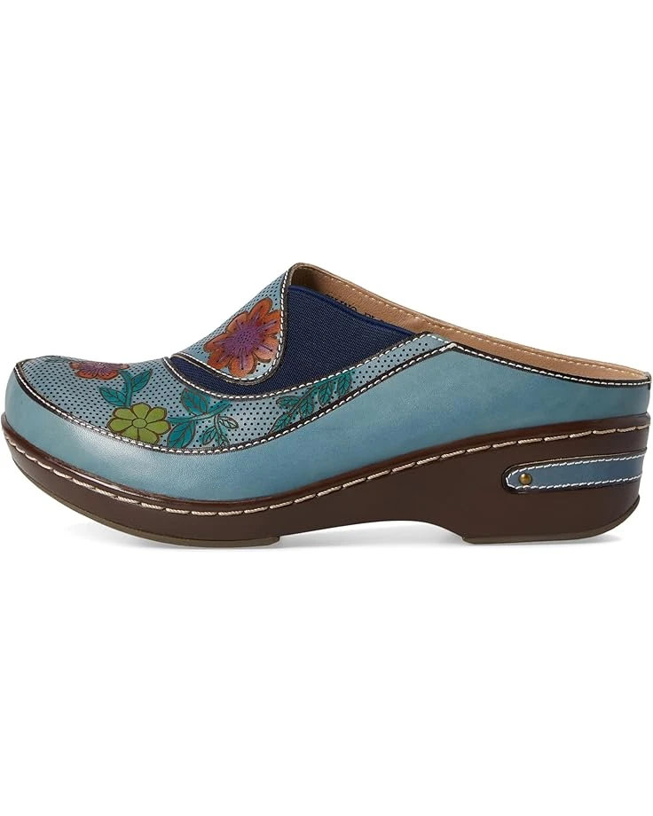 - The L’Artiste by Spring Step® Chino-Flower shoes are hand-painted, open-back, leather clogs with elastic piercing and contrast embossed design. Featuring a slip-on style for easy wear, these heeled clogs are made of a leather upper, faux leather insole, and faux leather lining. Match your casual outfits and styles with these stylish clogs.