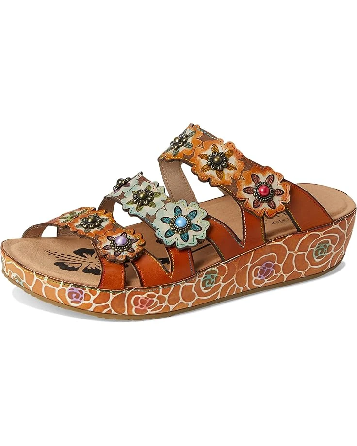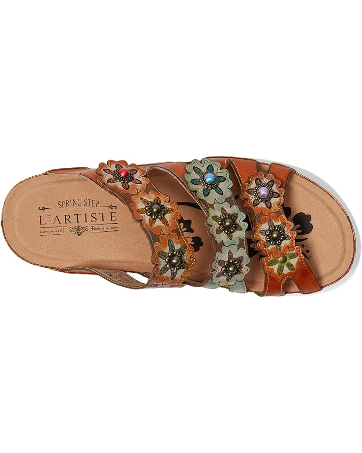 - The L’Artiste by Spring Step® Cuddlecake sandals are a true masterpiece, featuring intricate hand-painted floral details and antique embellishments that make them a one-of-a-kind, eye-catching style. The unique design will have you feeling like a fashion icon, turning heads wherever you go.