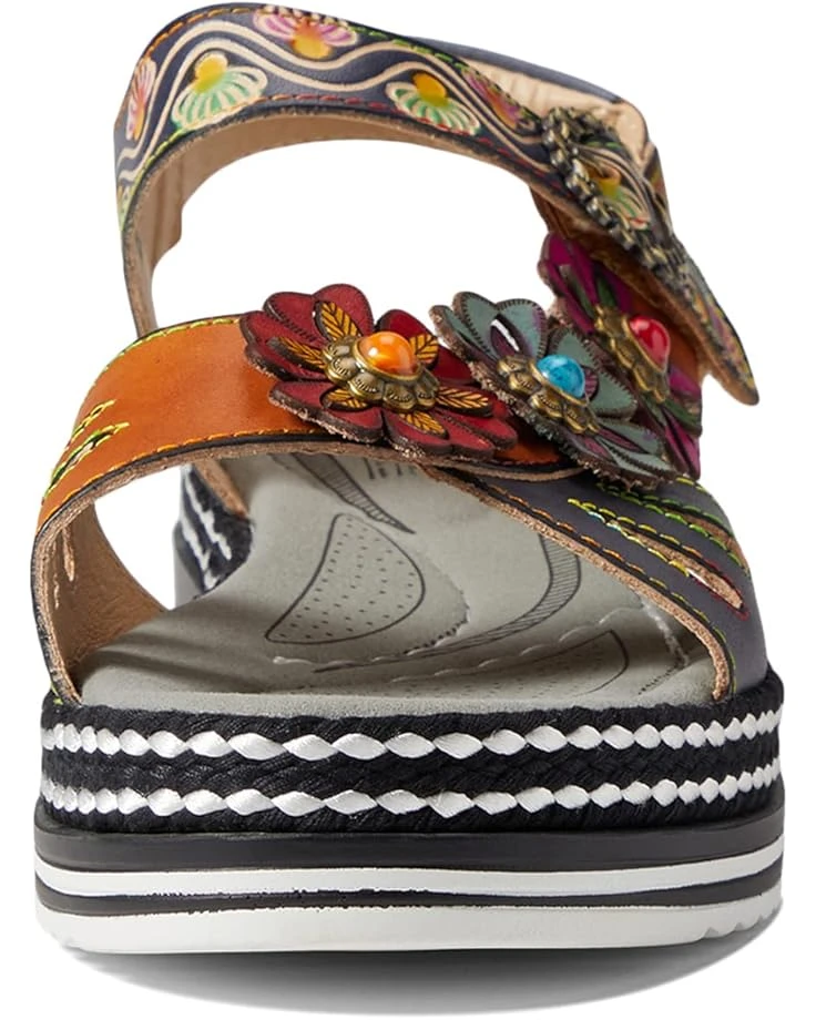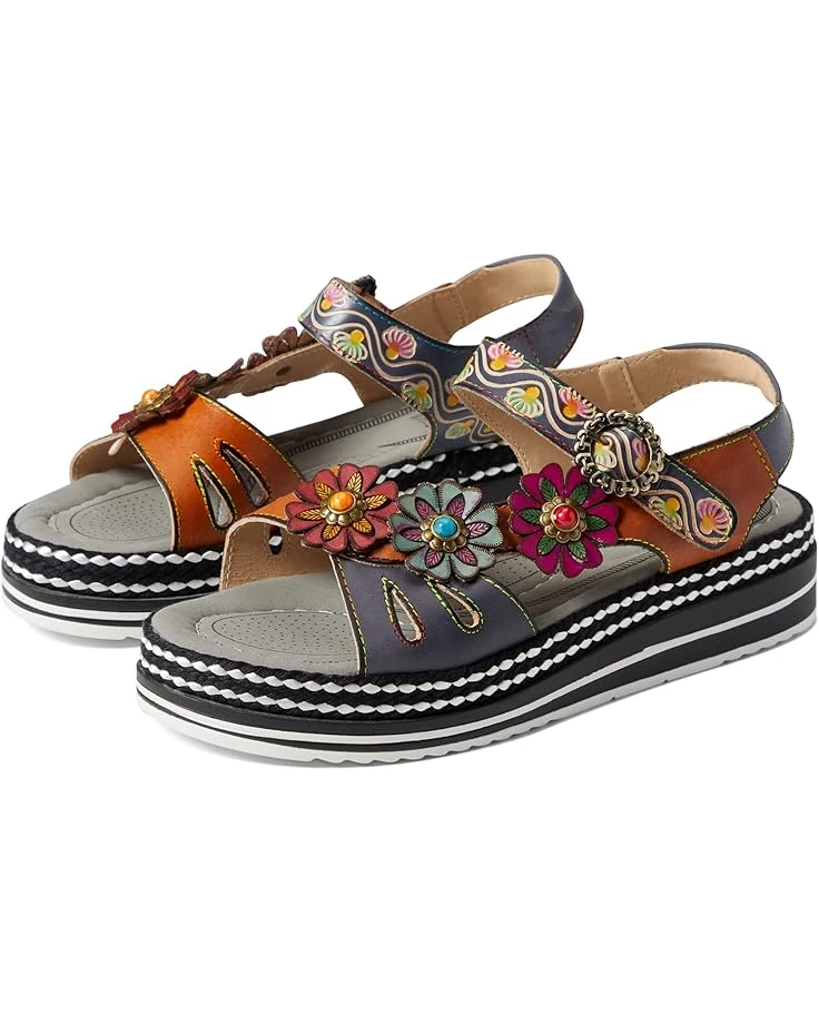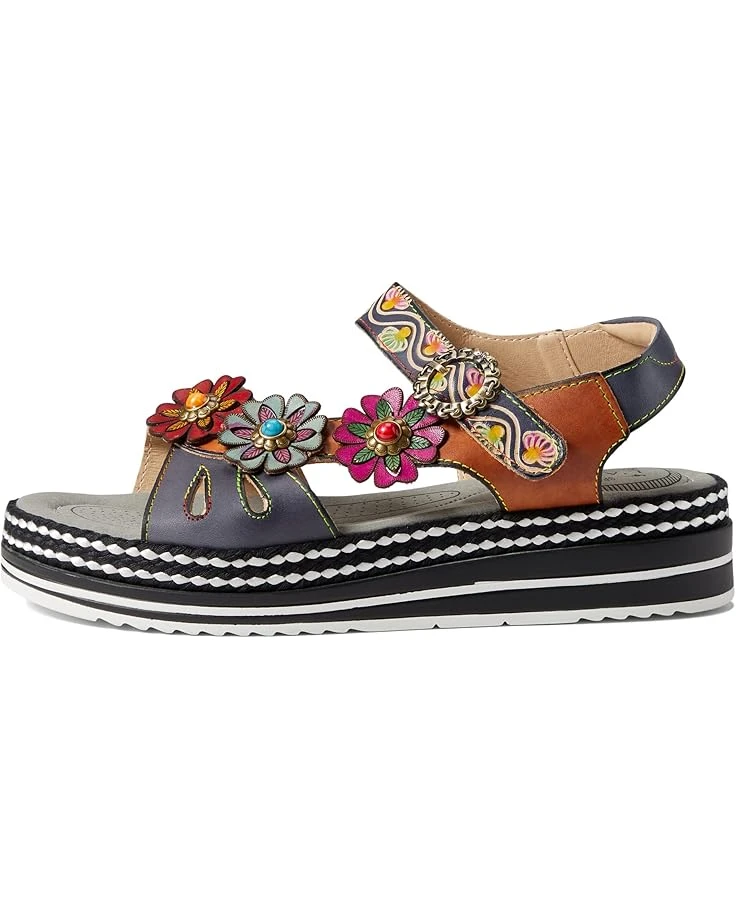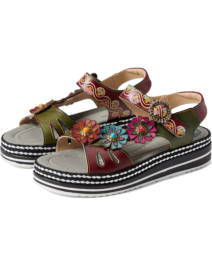 - Get ready to amplify your style quotient wearing the L’Artiste by Spring Step® Laga Flat Sandals, featuring bold colorways, eye-catching gemmed floral embellishments, and striking laser cutouts.