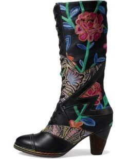 - Walk in comfort, shine with confidence styling L’Artiste by Spring Step® Malagie-Rose-where high fashion meets everyday versatility. This calf-high bootie, crafted with a chic leather upper and faux fur lining, effortlessly elevates any look. The striking denim twill, adorned with unique crewel embroidery, ensures you stand out from the crowd. Its lace-up front offers a custom fit, while the inside zipper makes slipping on and off a breeze. With a stacked heel providing a perfect lift and a rubber outsole for stability, Malagie-Rose blends artistic flair with comfort.