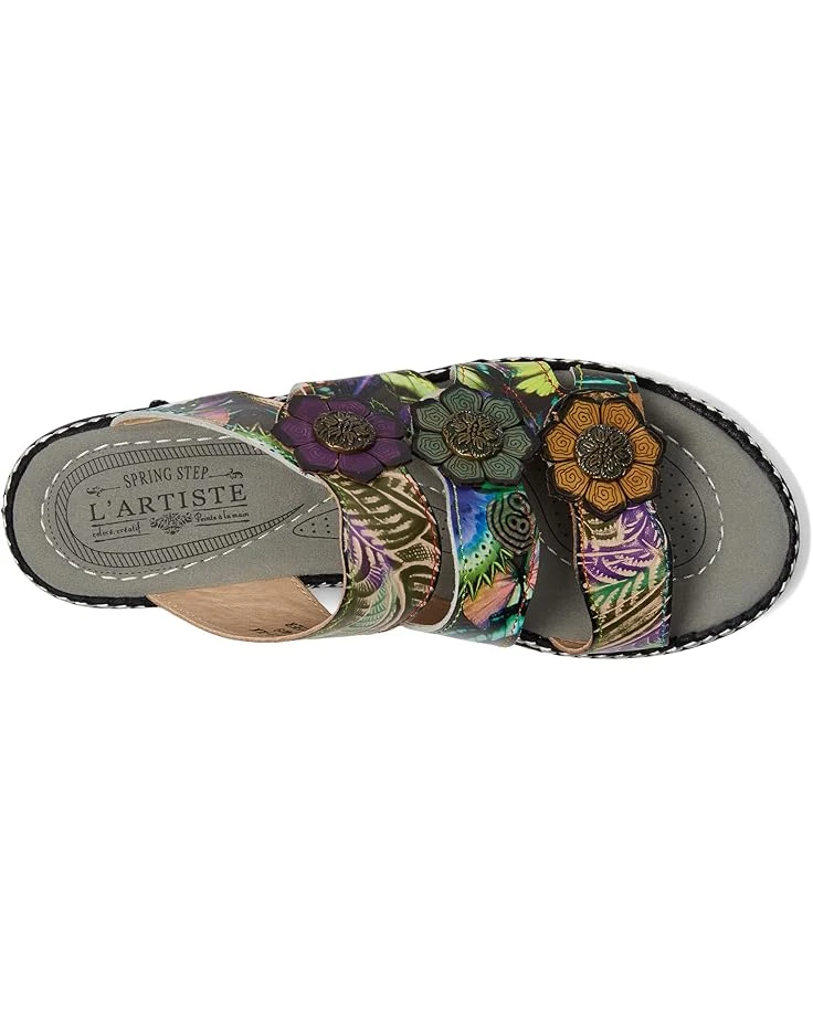 - Embrace your untamed spirit with the majestic beauty of butterfly prints, secure and customizable fit with all hook-and-loop closures, making it a breeze to slide into the fabulous L’Artiste by Spring Step® Naomi-Monarch sandal. This slip-on footwear is designed with wedge heels and a round, open toe silhouette.