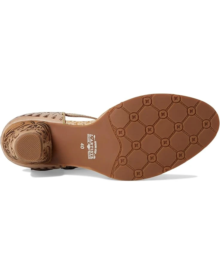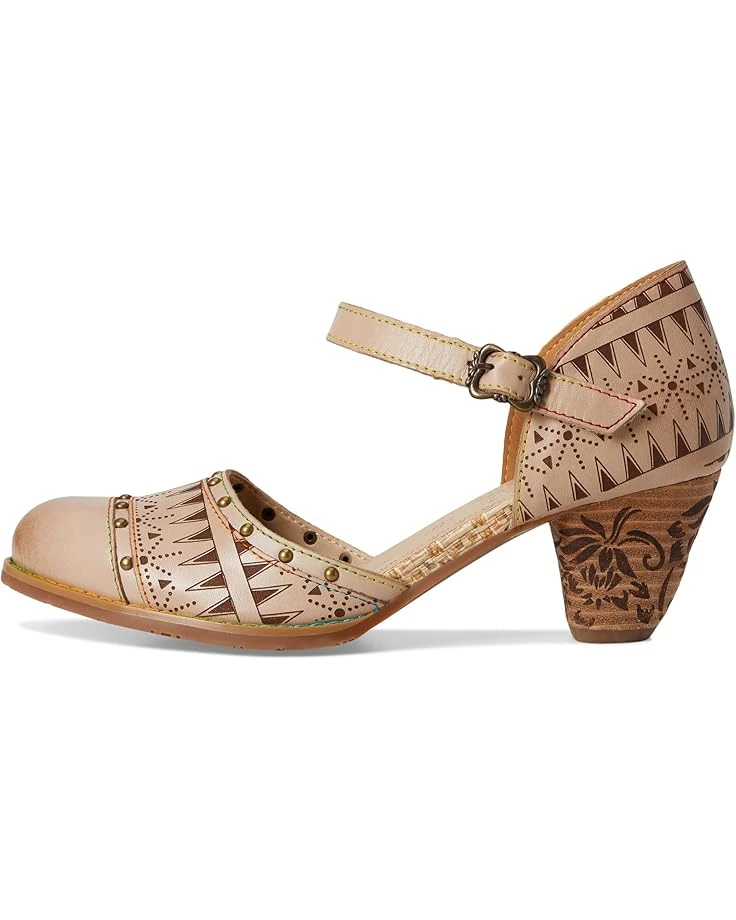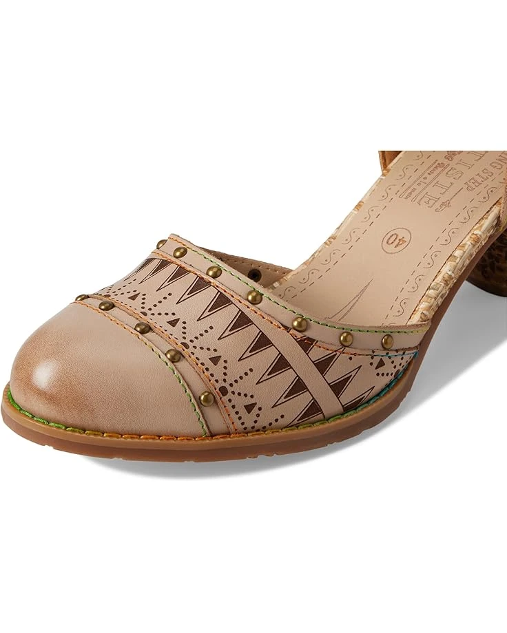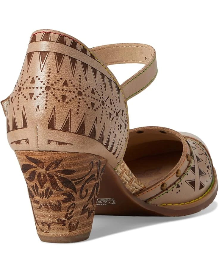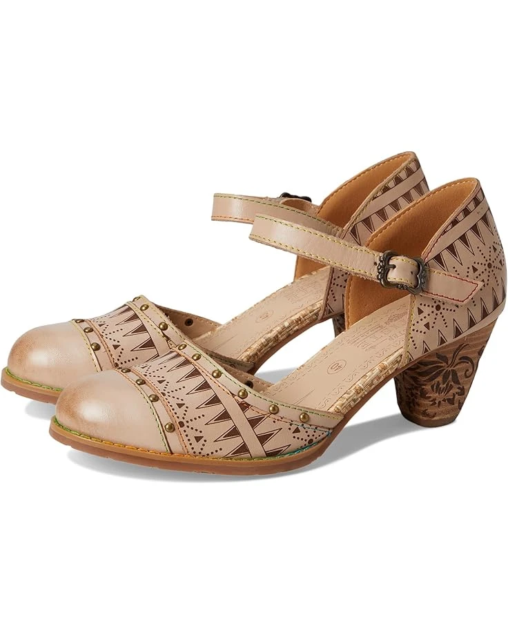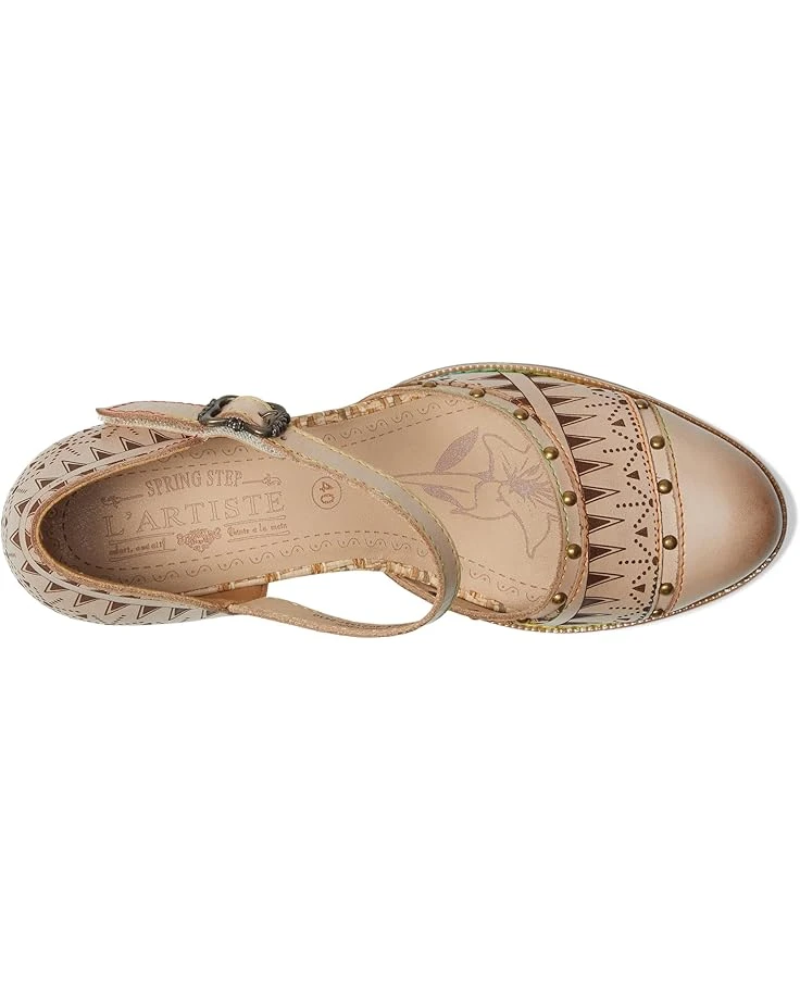 - The L’Artiste by Spring Step® Niobella is a classic mary jane sandal that’s anything but not ordinary. Featuring geometric designs etched into the leather upper, accented by stud details and a decorative antique brass buckle, these shoes make a bold statement. The floral etched faux stacked heel and peekaboo woven textile along the footbed add a touch of whimsy, while the hand-painted solid colors allow you to choose the perfect shade to complement your personal style.