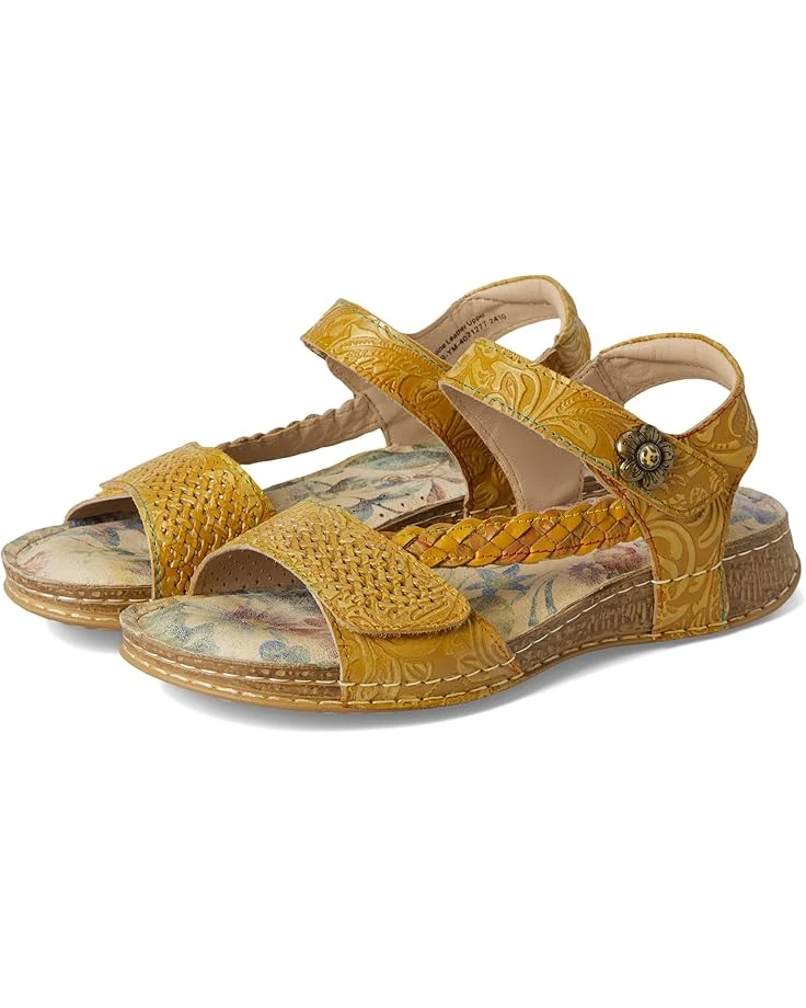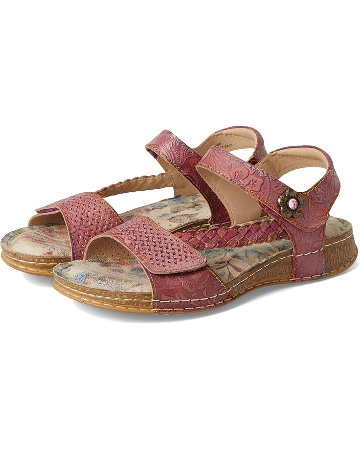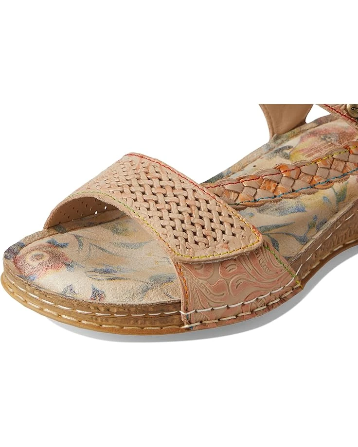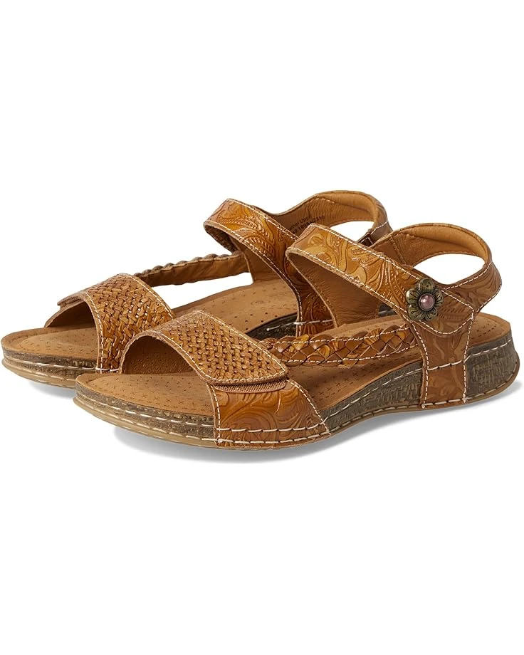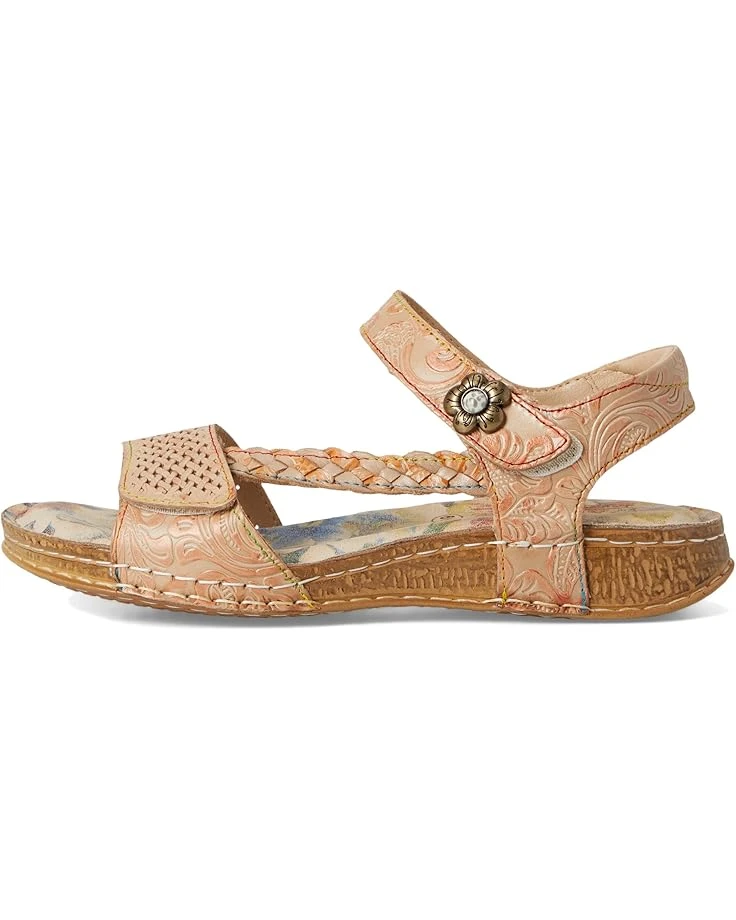 - Long walks would be perfectly easy and comfortable as you wear the L’Artiste by Spring Step® Popular Flat Sandals. The corked sandal features leather upper construction, braided side strap, double hook-and-loop closure with metal embossed flower for a fashionable look.