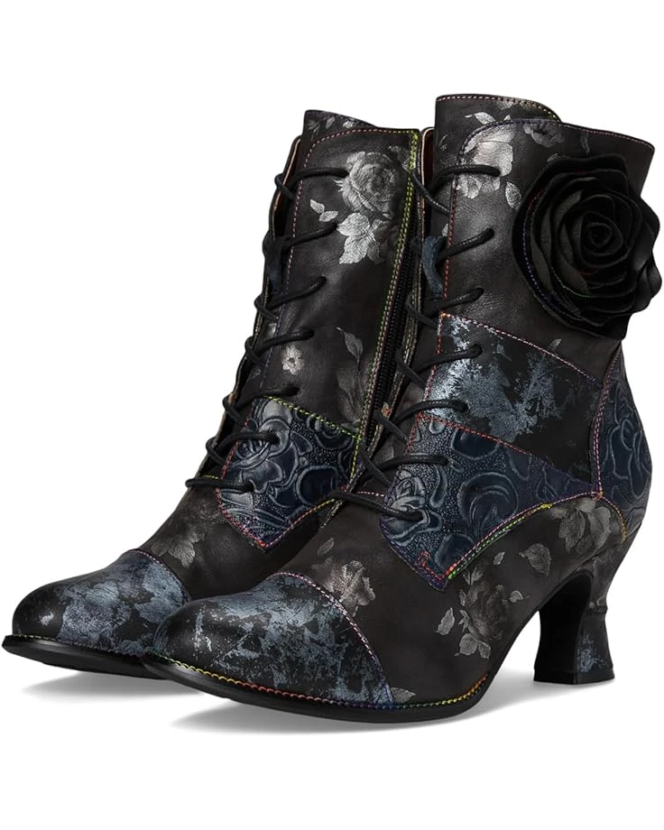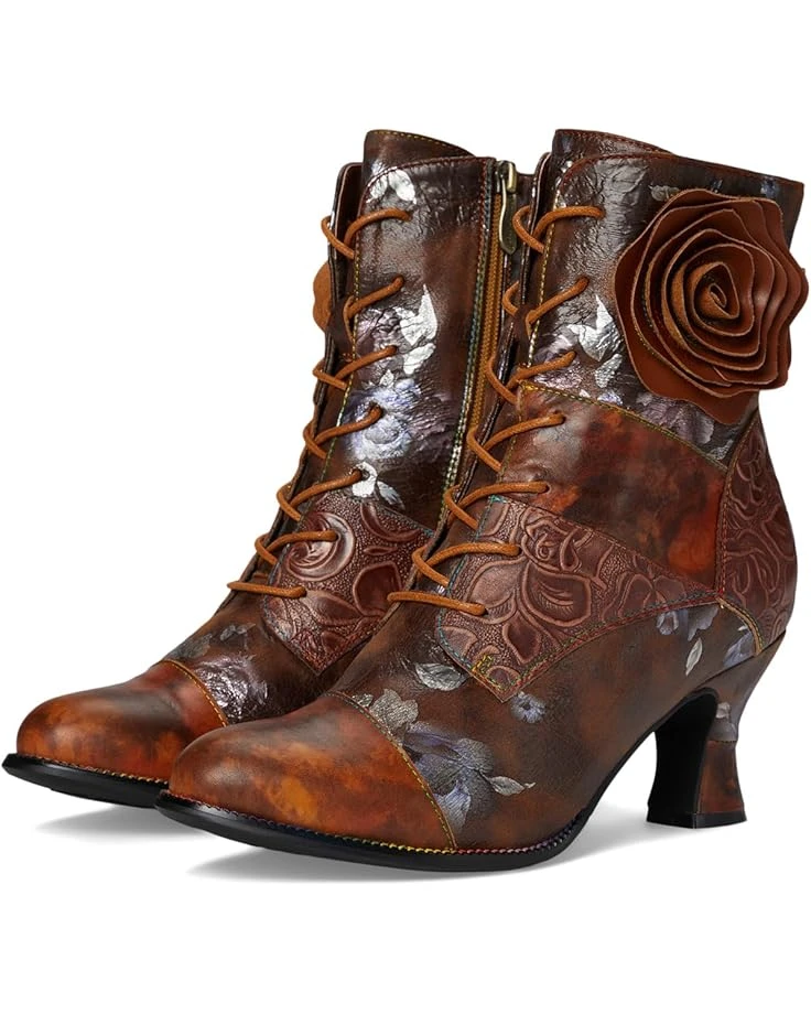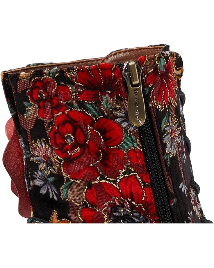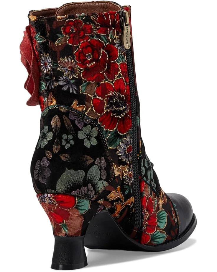 - Create a striking first appearance as your step into the party wearing L’Artiste by Spring Step® Roselia Boots with allover intricate tapestry floral and rose detailing. The heels feature a leather & textile upper with pointed toe shape, lace & zipper closure for easy on/off, and flared heel for added style.