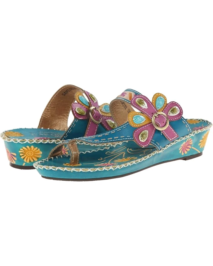 Love this shoe! I have several designs in the L’Artiste line. They’re fun and colorful, and very comfortable. This pair is replacement for an identical pair that I’ve worn for 3 years now. They fit very well, but are adjustable if needed. Great summer sabdal!