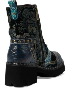 - Introducing L’Artiste by Spring Step® Severity lace-up combat style boot! This edgy design features a textured cap toe design and heel counter, outlined with studs for added flair. The embossed hand-painted flowers and printed suede shaft give this boot a unique and stylish look. Built on a lug sole with rivets wrapping around the welt, these boots are not only fashionable but also durable for all your adventures.