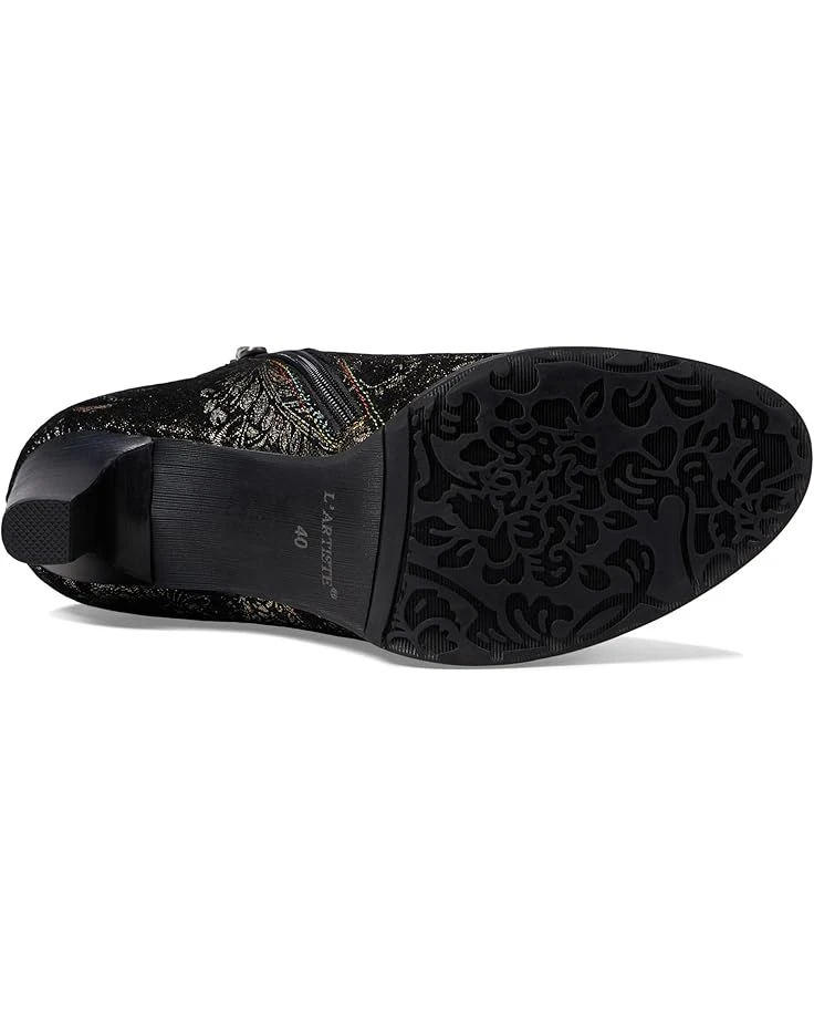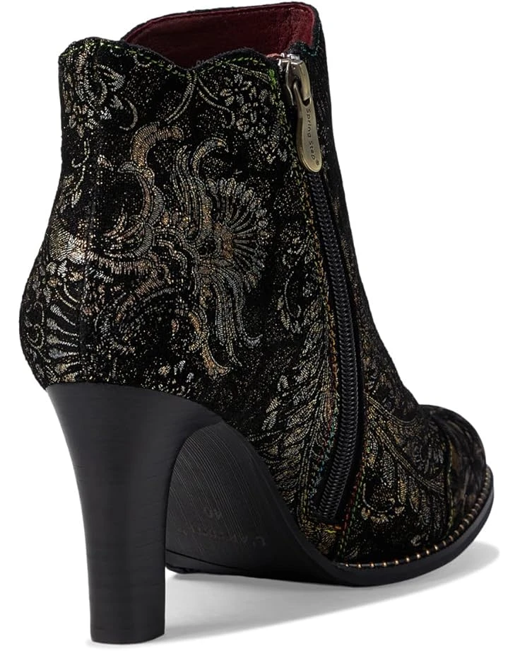 - Flaunt an absolute charming beauty wearing the L’Artiste by Spring Step® Smokin Hot Bootie Heels. This almond toe pair features leather upper construction with synthetic and velvet lining that accompanies a stunning metallic floral print design.