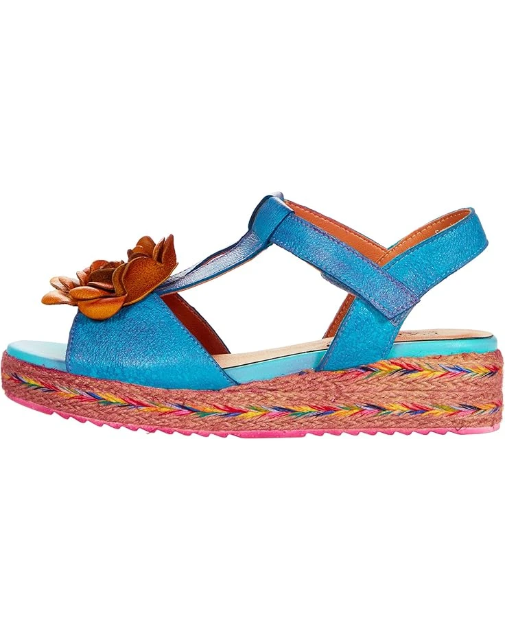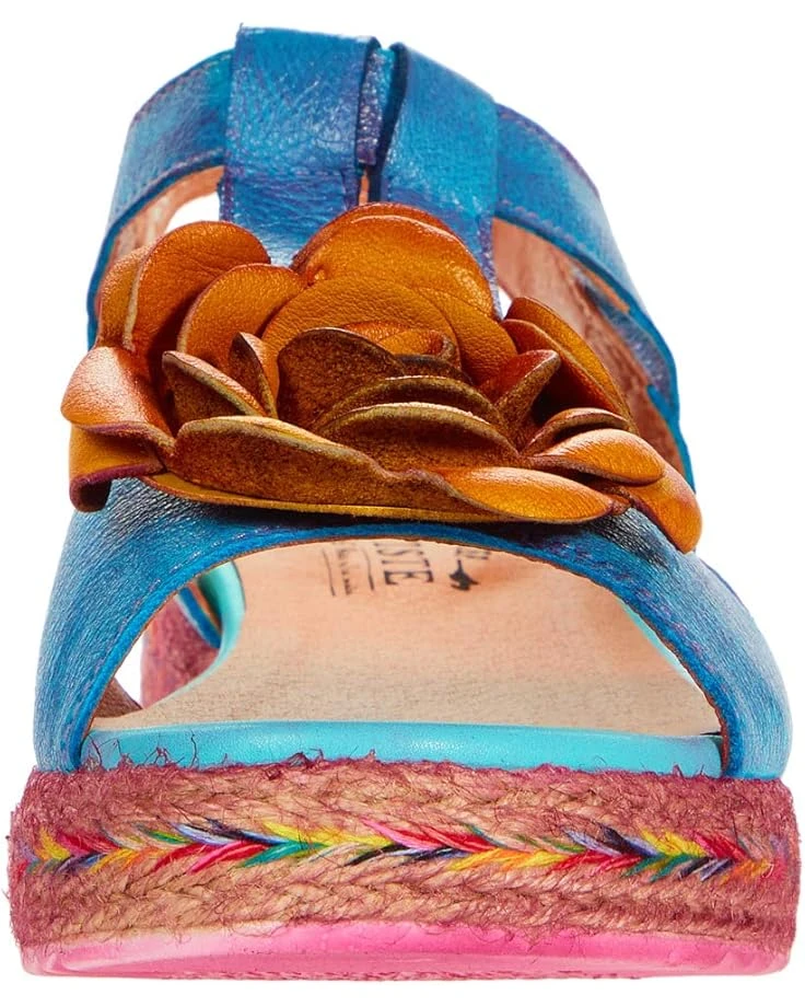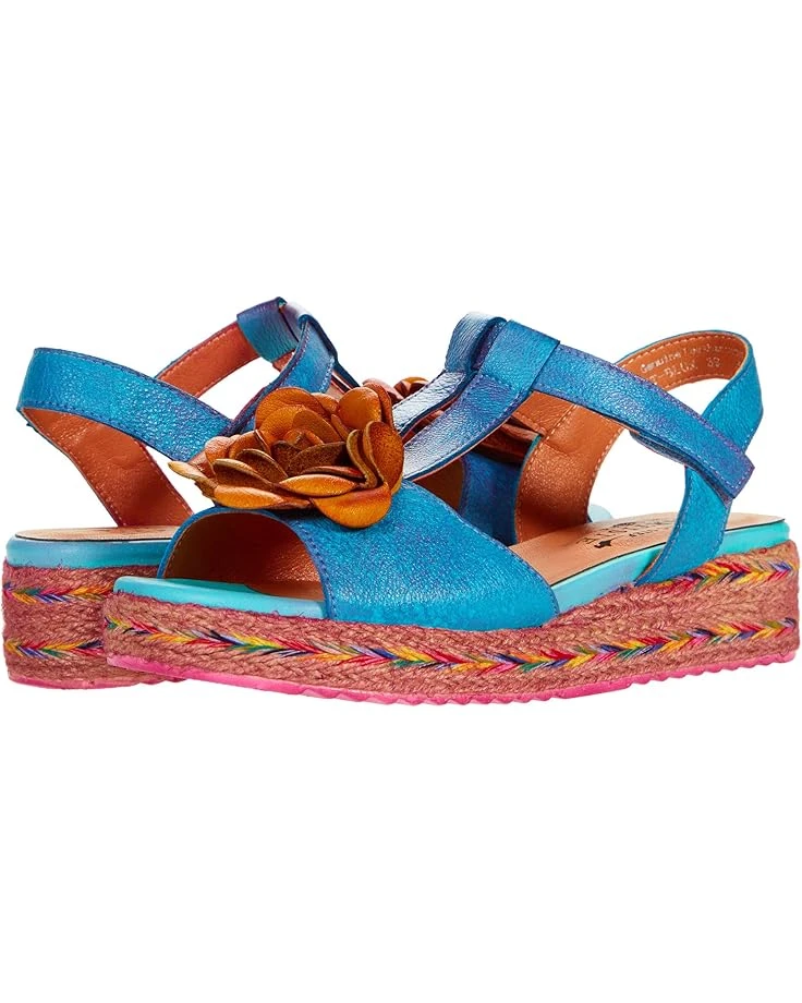 - The French inspired brushed leather L’Artiste by Spring Step® Tempest features a multi-color jute wrapped wedge with an adjustable closure ankle strap, a well padded insole and a decorative 3 dimensional flower.