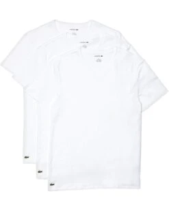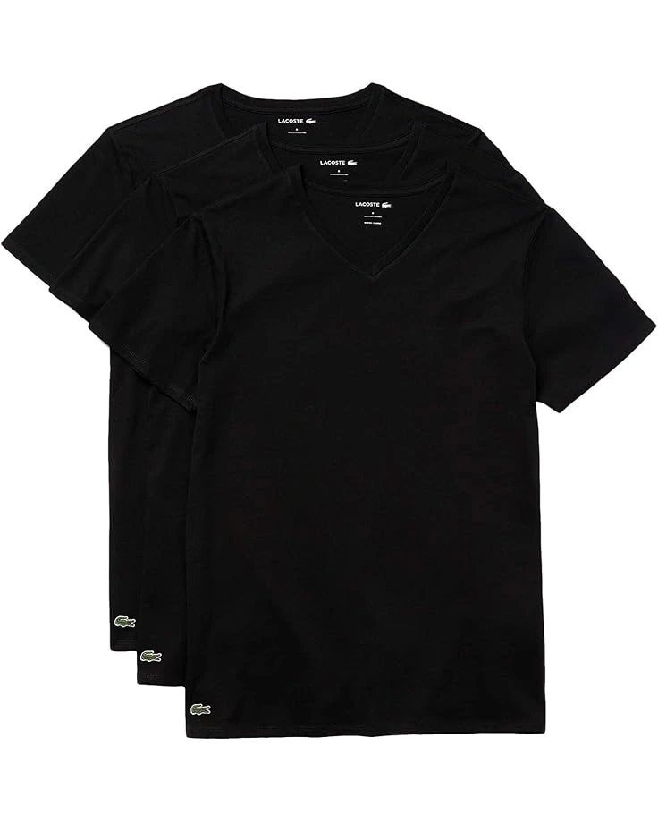 - The Lacoste® 3-Pack V-Neck Slim Essential T-Shirt offers a clean and comfortable design that’s perfect for everyday wear. This undershirt is crafted with the superior softness of pure cotton, and is detailed with the signature green crocodile at the hem.