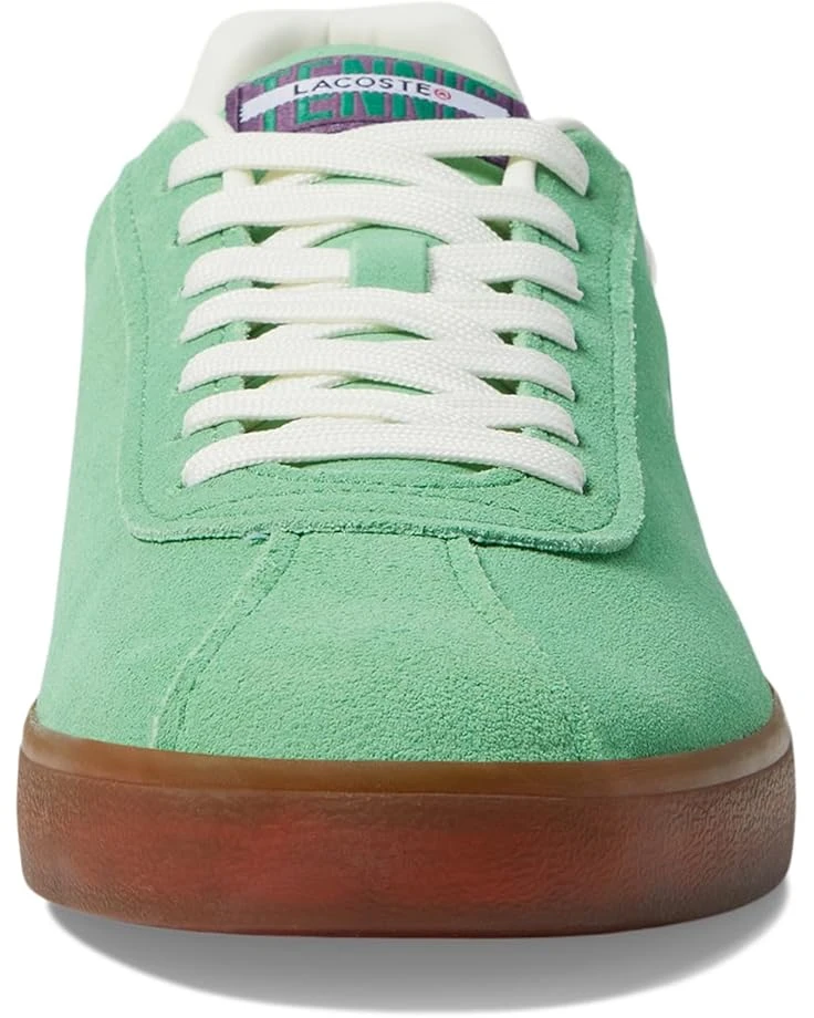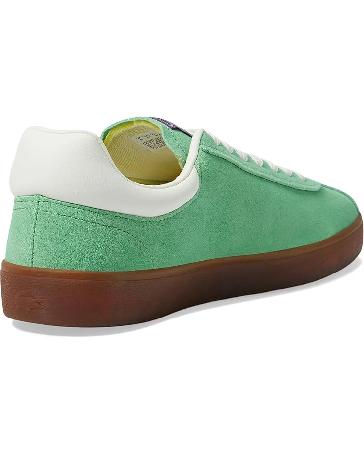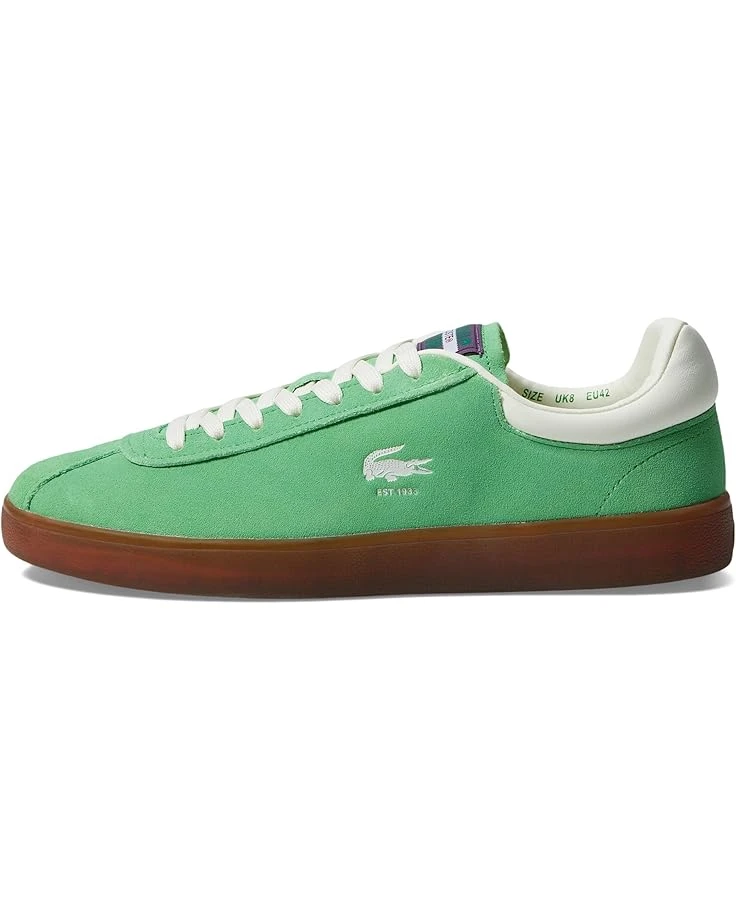 - Achieve a timeless look wearing Lacosteâ„¢ Baseshot 124 1 SMA Sneakers, crafted in a full cashmere suede upper, cotton lining, cushioned insole, and a branded archive-inspired woven label to the tongue. The synthetic leather collar with lace-up closure and printed crocodile branding to side along with branded woven label to tongue adds a sporty touch to the look.