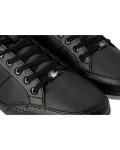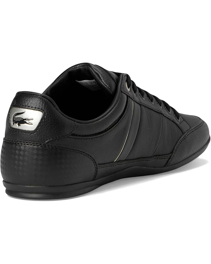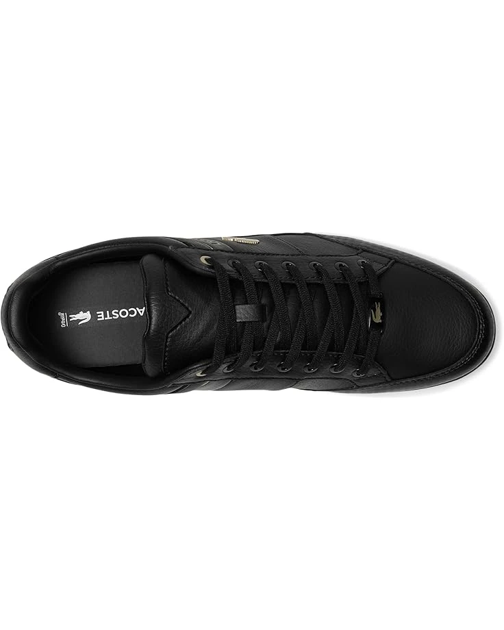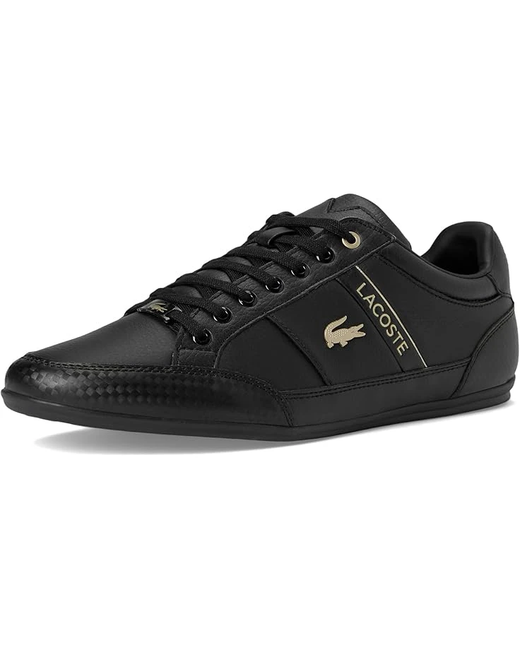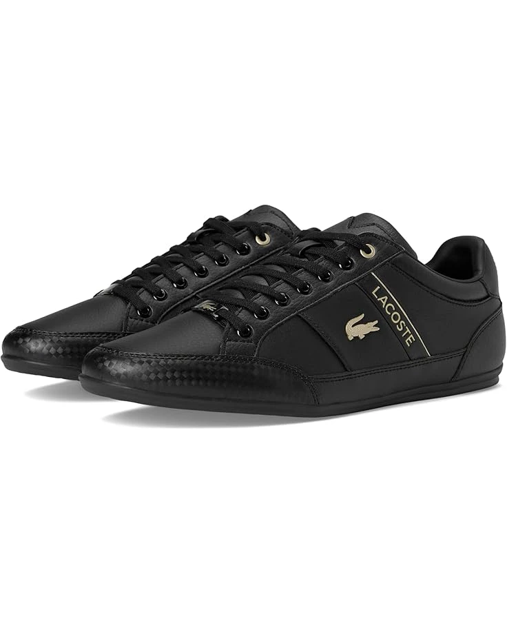 - The Lacosteâ„¢ Chaymon shoes are a lesson in refined, sport-informed design. These casual lace-up shoes are crafted to a sleek silhouette that evokes the brand’s tennis heritage and the unrivaled sartorial elegance of Rene Lacoste himself. An all-black execution works perfectly with the layered leather upper, creating textural interest without overwhelming the eye. The EVA insole and synthetic and textile lining offer added comfort. Understated detailing such as the piped accents and slim cigar bar stripe further enhance the aesthetic of these leather sneakers.