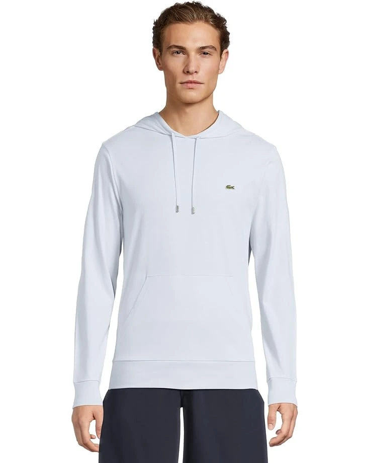 - Long sleeves, an adjustable hood with drawstring, and a kangaroo pocket give the Lacoste® Hooded Cotton Jersey T-shirt an original T-shirt twist. It features an embroidered green crocodile on the chest. This hooded T-shirt is designed with ribbed cuffs and hem for a snug fit. Built from a soft cotton jersey, this pullover T-shirt is your winning ticket to comfort and warmth.