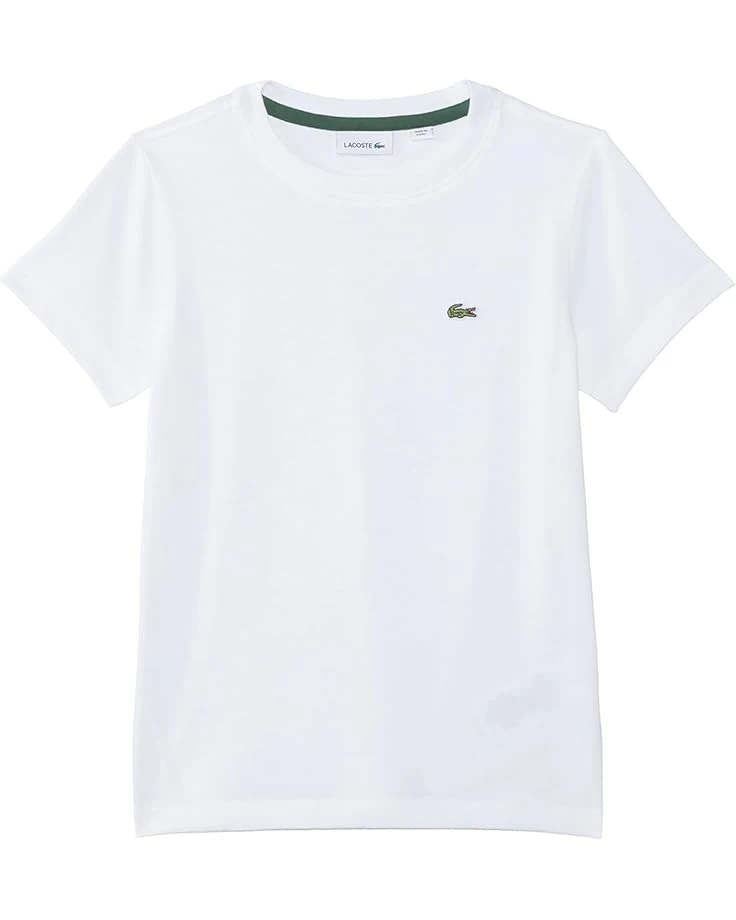 - Stylish and easy to layer, the casual Lacoste® Kids Short Sleeve Crew Neck Classic Cotton T-Shirt comes with a classy crew neckline and short sleeves with a straight hem.