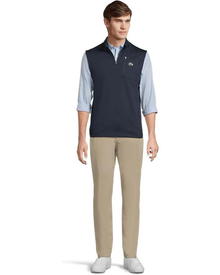 - Crafted from soft, breathable fabric that keeps you comfortable whether you’re relaxing or on the go, the Lacoste® Sleeveless Quarter Zip Sweater features the iconic crocodile logo for a signature touch of sophistication. With a classic fit and versatile quarter-zip design, this sweater offers a smart, relaxed look for any occasion, from casual outings to weekend getaways. It is styled with a collared neckline and a straight hem. Thoughtfully tailored for a sleek, contemporary silhouette that moves with you, this sleeveless sweater is ideal for layering in cooler weather, combining practicality with unmistakable style.