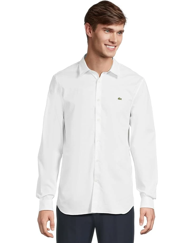 - Own your style in this Lacoste® Slim Fit Stretch Cotton Poplin Shirt. Made from premium stretch cotton, cut to flatter without limiting your movements. The perfect blend of comfort and elegance, great under a suit jacket.