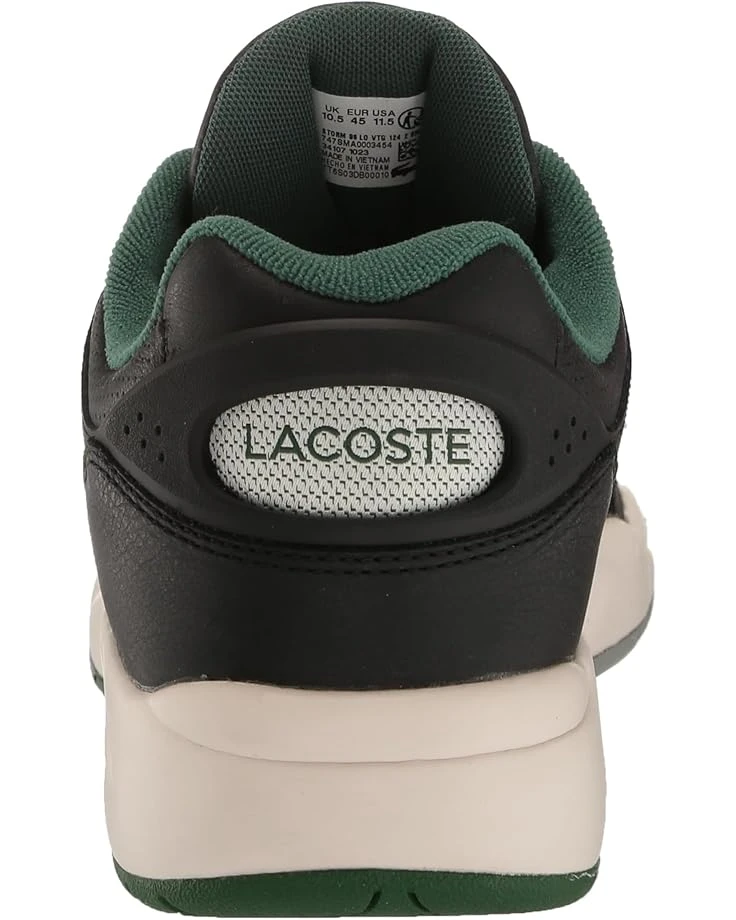 - The Lacosteâ„¢ Storm 96 Lo Vtg 124 2 SMA shoes pays homage to the original archive design while adding a throwback feel to the aesthetic. It has leather upper with mesh overlays and woven labels. Branding on the side and heel give a chic look. The shoes feature polyester lining and insole. A round toe, lace closure, and rubber details make a unique style to add to your off-duty wardrobe.